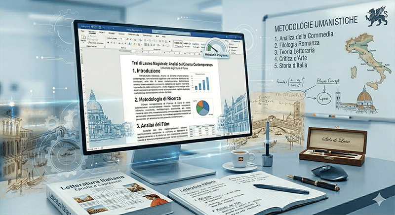Nasz zespół ekspertów, italianistów, kulturoznawców i redaktorów specjalizuje się w kompleksowym wsparciu, od precyzyjnego sformułowania hipotez po gotowy do oddania tekst (tesi di laurea):